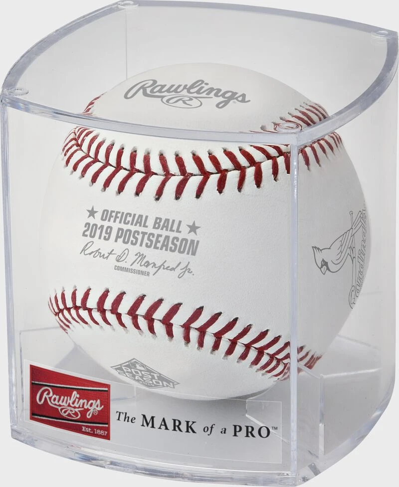 These 2019 NLCS Baseball features the logos of the St. Louis Cardinals and the Washington Nationals. These baseballs are finely crafted to meet the rigid specifications established by Major League Baseball.