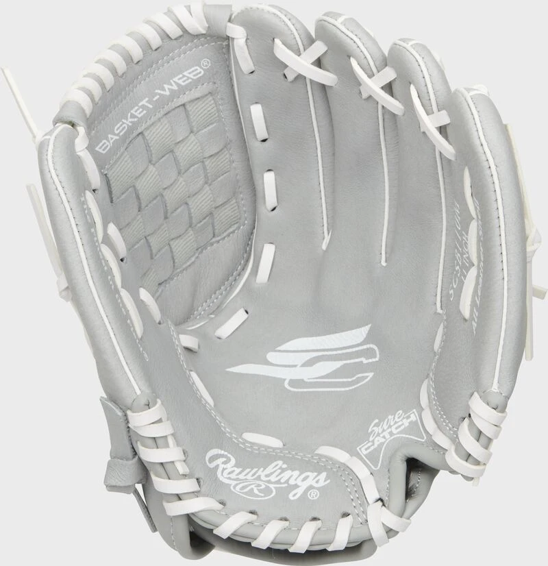 The Rawlings Sure Catch™ Softball 11-Inch youth outfield glove is constructed with a soft, all-leather shell for enhanced durability and pocket shape retention. Its Sure Catch heel cut out design allows for a quick and easy close while the Basket web creates a flexible, ball-snagging pocket making it perfect for young athletes who need a glove that’s game-ready off the shelf. Additionally, the cushioned finger linings offers added comfort and features a Velcro wrist strap for a custom fit. Get yours today!